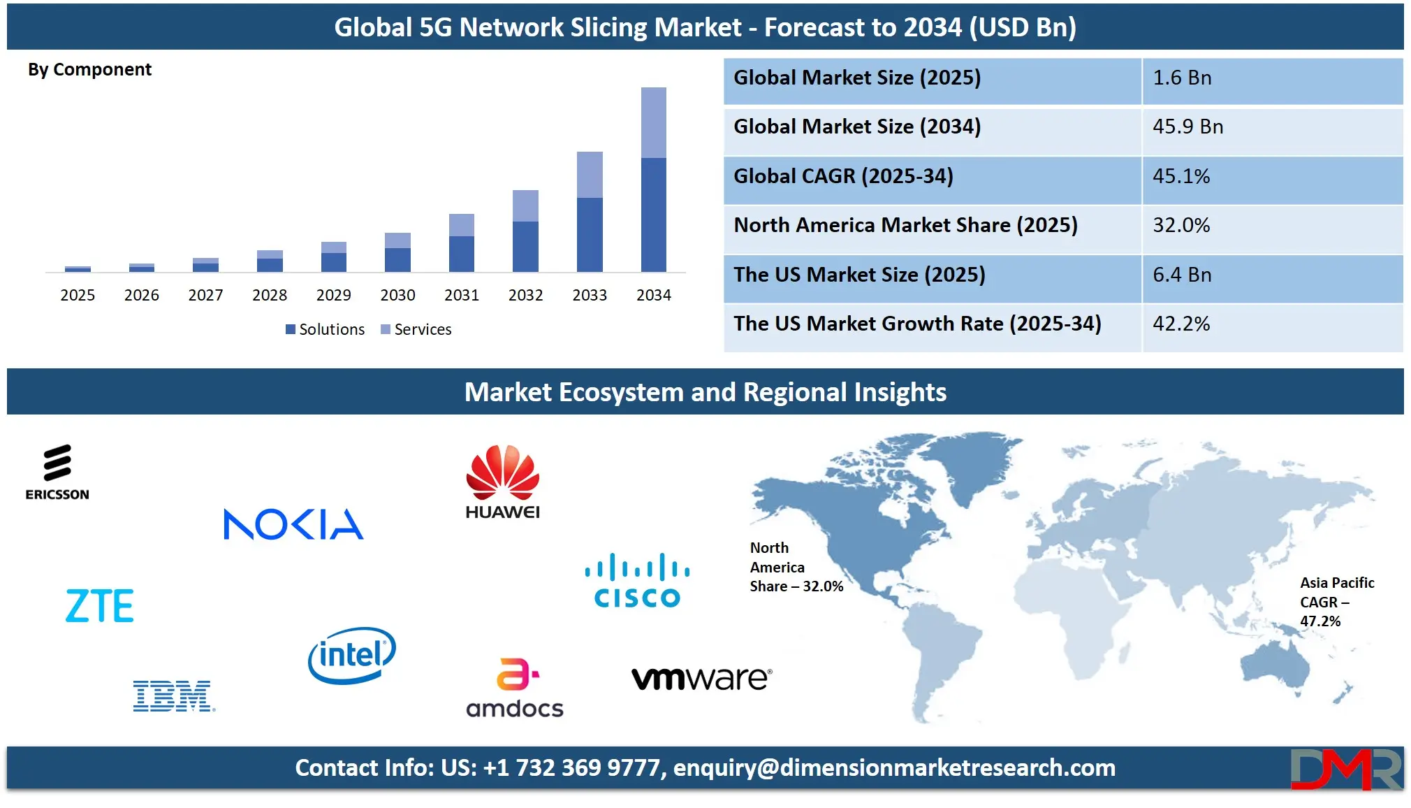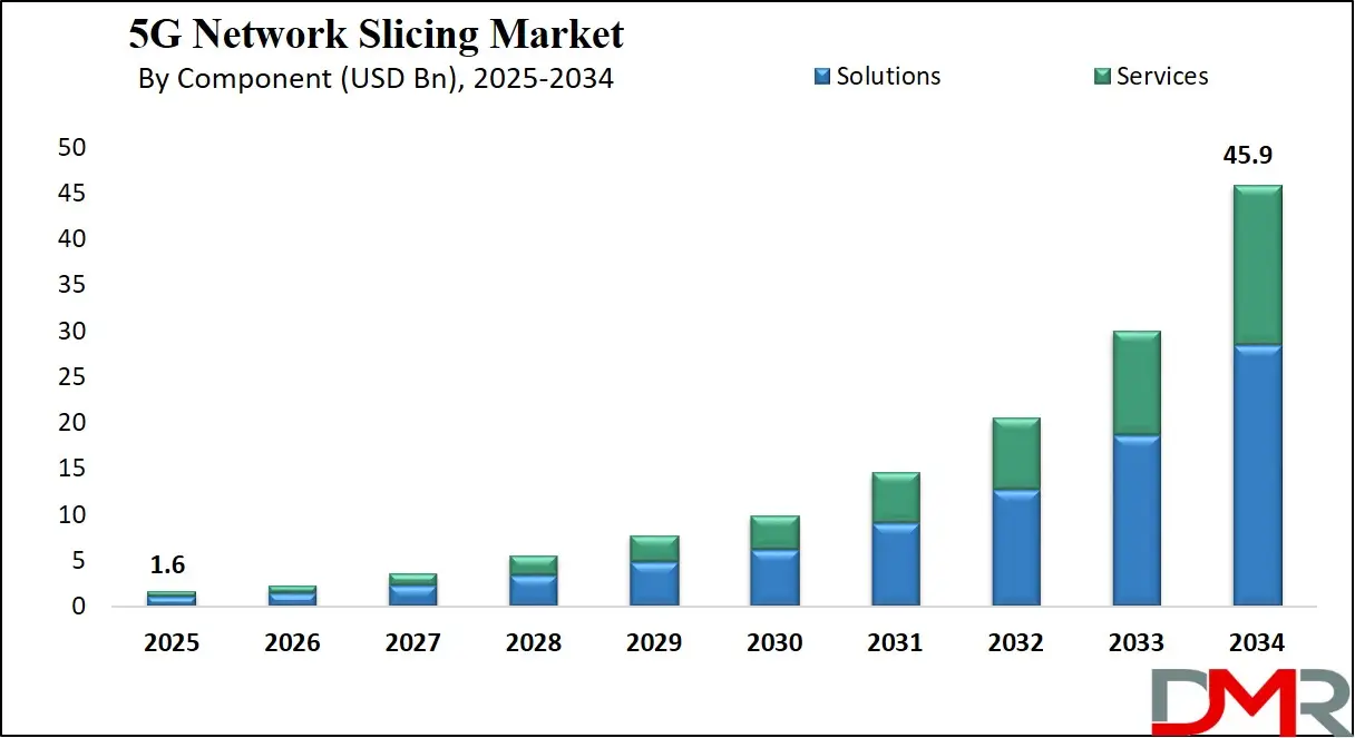 The Global 5G Network Slicing Market size is expected to reach a value of USD 1.6 billion in 2025 and is expected to reach USD 45.9 billion by the end of 2034.