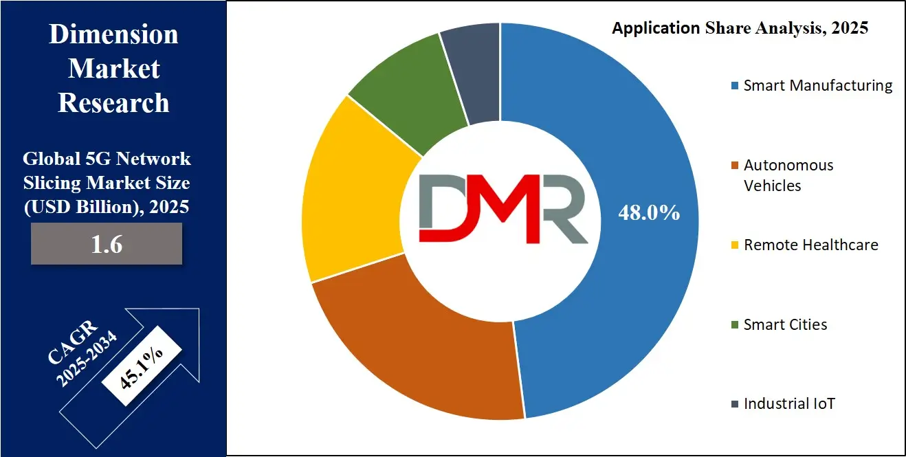 - By Application: The smart manufacturing segment is expected to get the largest revenue share in 2025 in the 5G Network Slicing Market.