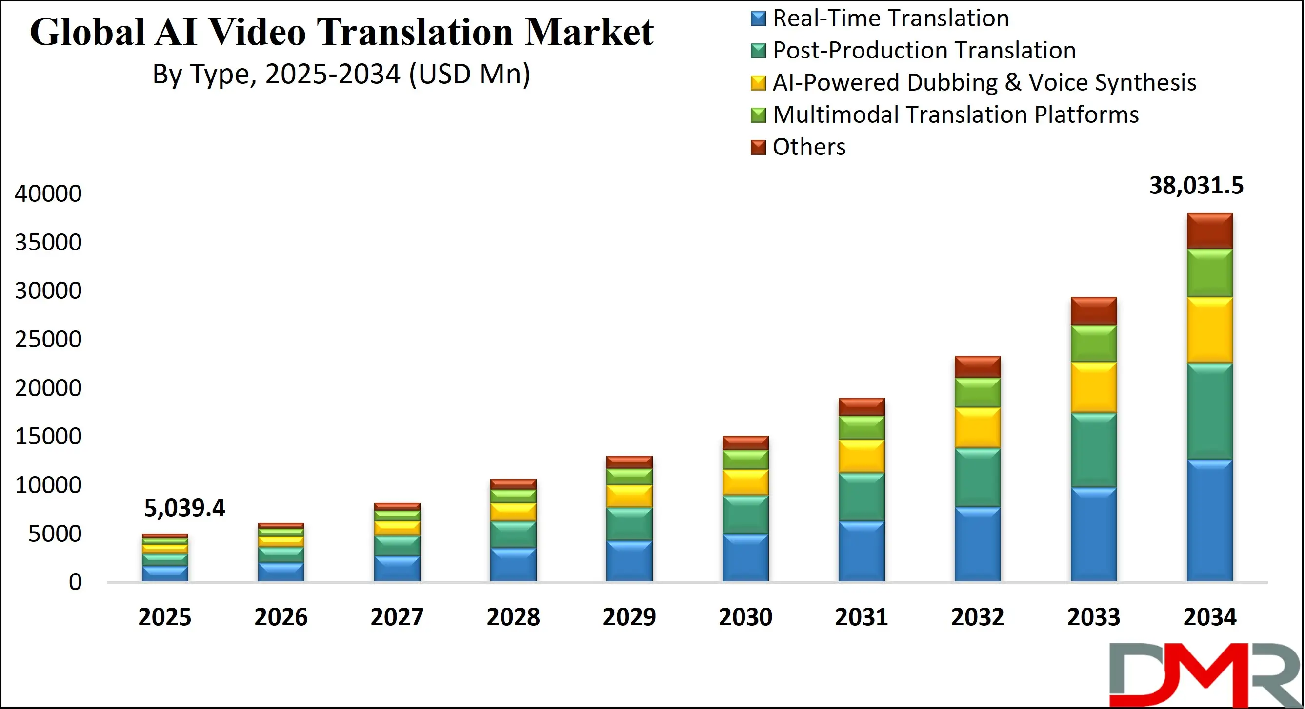 AI Video Translation Market By Type (Real-Time Translation, Post-Production Translation, AI-Powered Dubbing & Voice Synthesis, Multimodal Translation Platforms, and Others) By Application, and By End User - Global Industry Outlook, Key Trends and Forecast 2025-2034