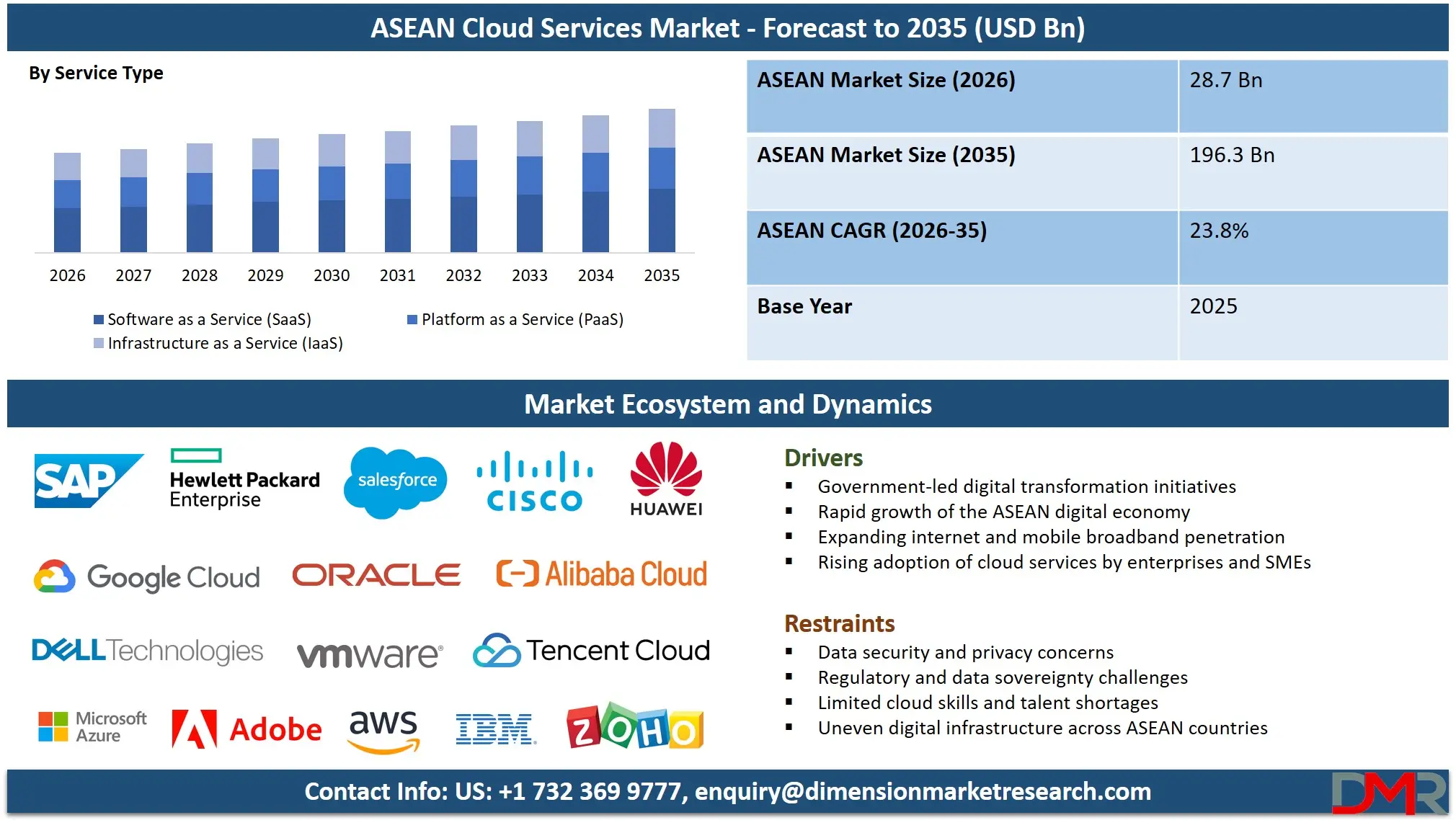 - Exponential Regional Market Growth: The ASEAN Cloud Services Market is poised for exponential growth, expanding from USD 28.7 billion in 2026 to USD 196.3 billion by 2035, reflecting the region's full-scale digital pivot.
