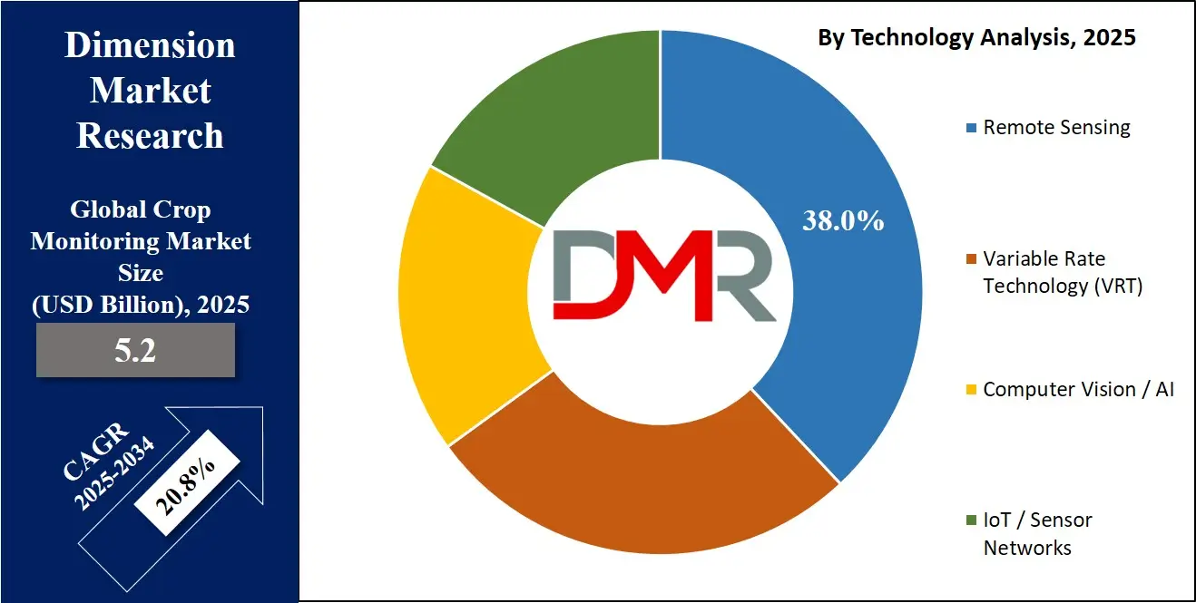 Remote sensing technology is expected to lead the technology segment of the crop monitoring market, capturing around 38.0% of the total market share in 2025. This dominance is driven by the ability of remote sensing tools to provide large-scale, high-frequency monitoring of crop health, soil variability, and field conditions without the need for physical presence in the field. Using satellite imagery, drone-based surveillance, and aerial mapping, remote sensing enables farmers to detect early signs of crop stress, disease outbreaks, water stress, or nutrient deficiencies across expansive farmlands.