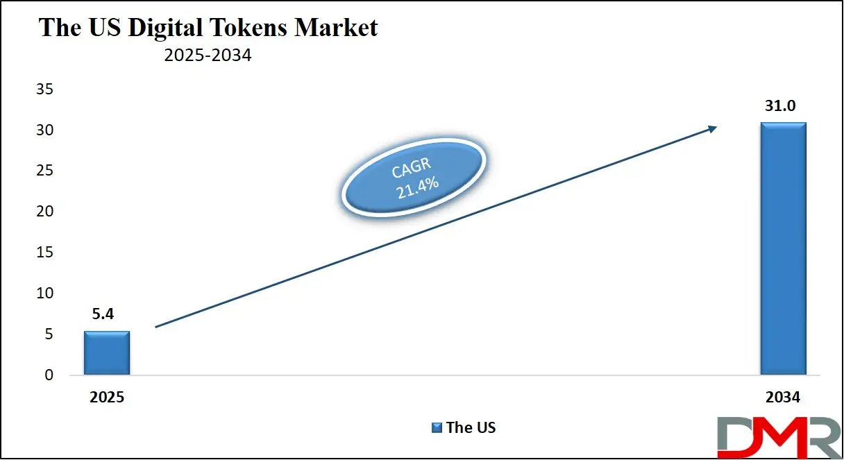 • The US Market Size Insights: The US Digital Tokens Market is projected to be valued at USD 5.4 billion in 2025. It is expected to witness subsequent growth in the upcoming period as it holds USD 31.1 billion in 2034 at a CAGR of 21.4%.