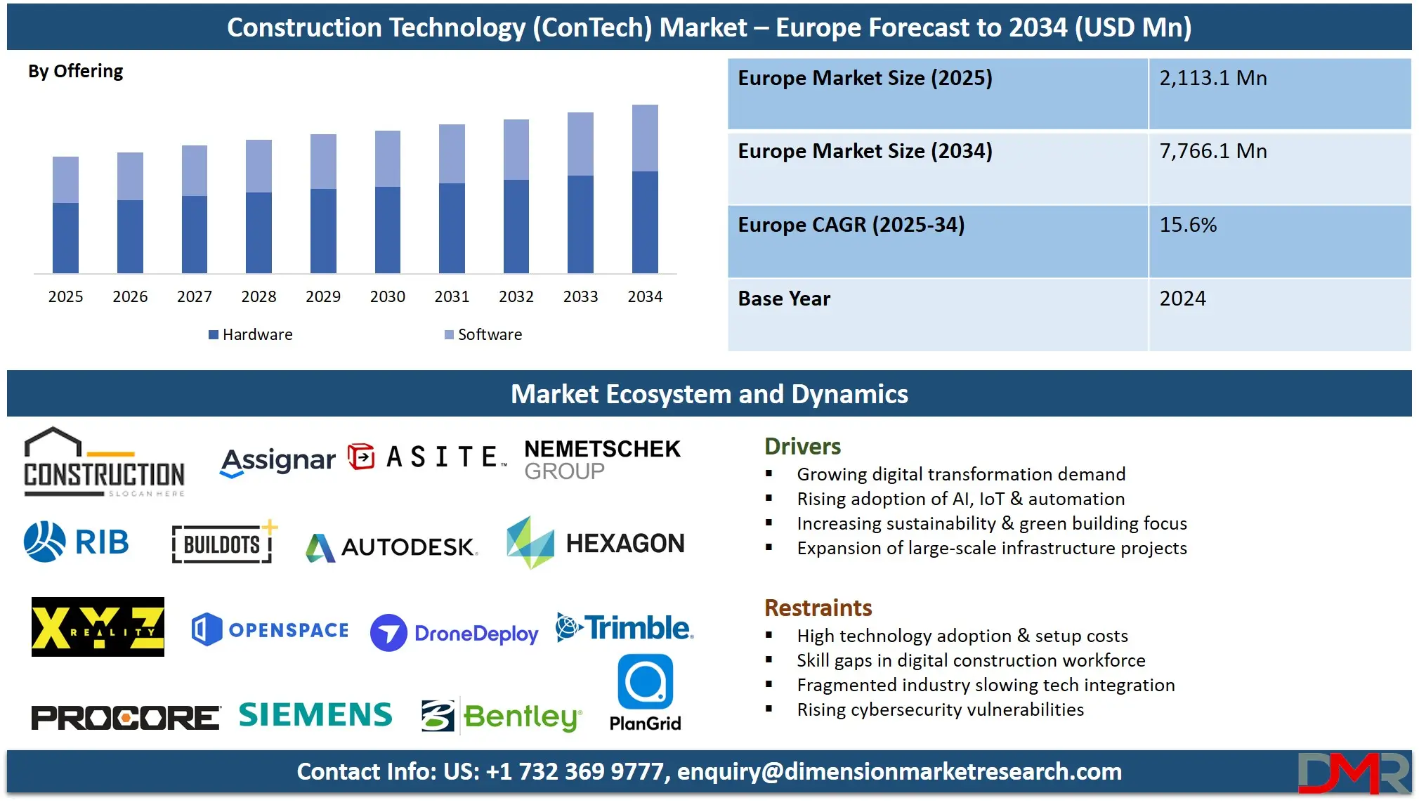 The Europe Construction Technology (ConTech) Market By Offering (Hardware, Software), By Technology, By Application, By End User, and By Project Type - Industry Outlook, Key Trends and Forecast 2025-2034