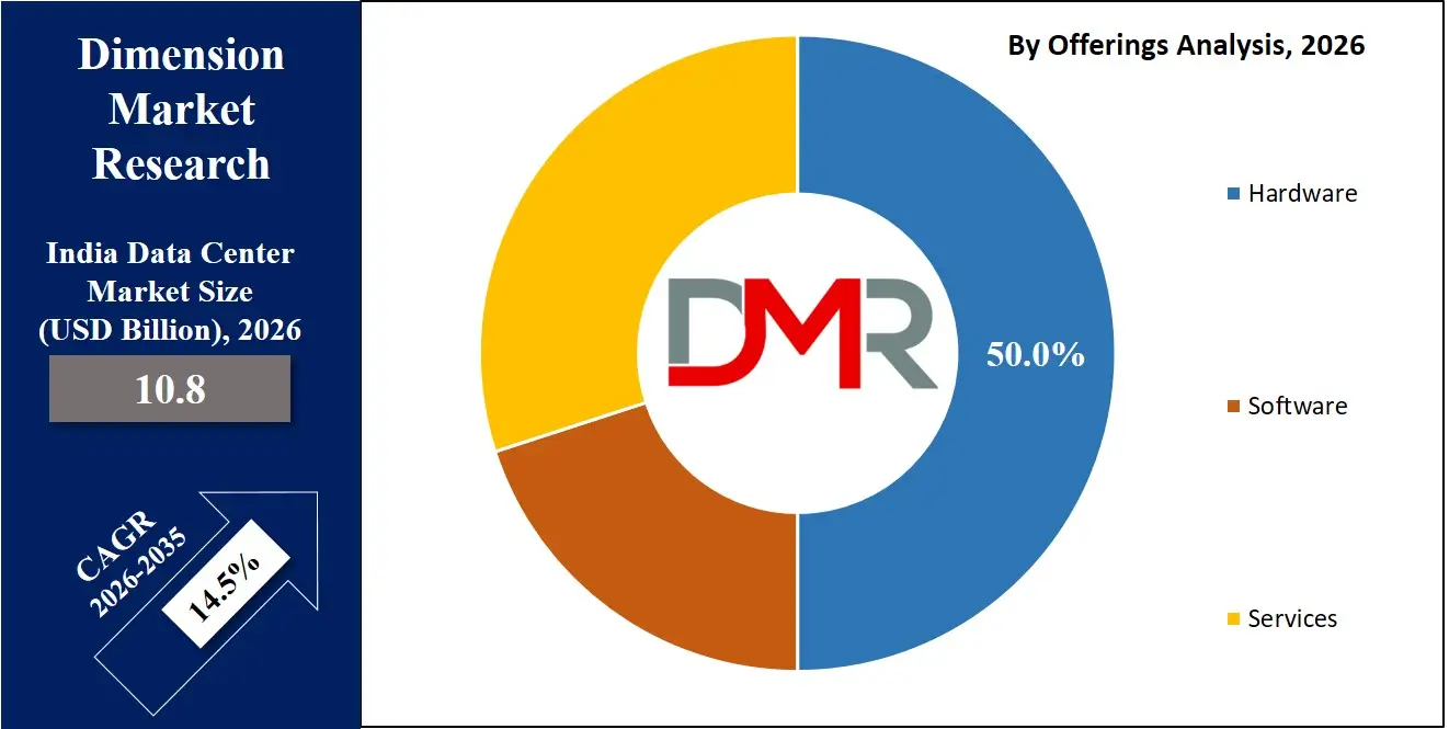 Hardware is anticipated to dominate the offering segment with about 50.0% share in 2026 because India’s data center expansion is being driven by large scale investments in physical infrastructure such as servers storage systems networking equipment power distribution units and advanced cooling technologies. The rapid growth of cloud computing artificial intelligence digital payments and content streaming is pushing operators to deploy high density compute and storage platforms with high availability and energy efficiency. Hyperscale and colocation facilities require continuous upgrades of IT and power equipment which makes hardware the largest revenue contributor in the Indian data center ecosystem.
