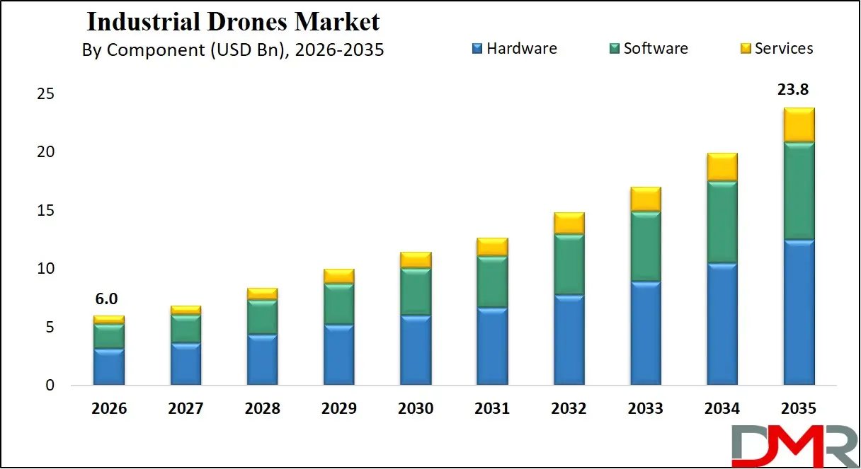 Software is the fastest-growing component segment, fueled by AI-driven analytics, cloud integration, and autonomous flight management systems. Industrial users increasingly rely on real-time data processing, predictive analytics, and digital twin integration platforms. Subscription-based software models are accelerating adoption and generating recurring revenue streams.