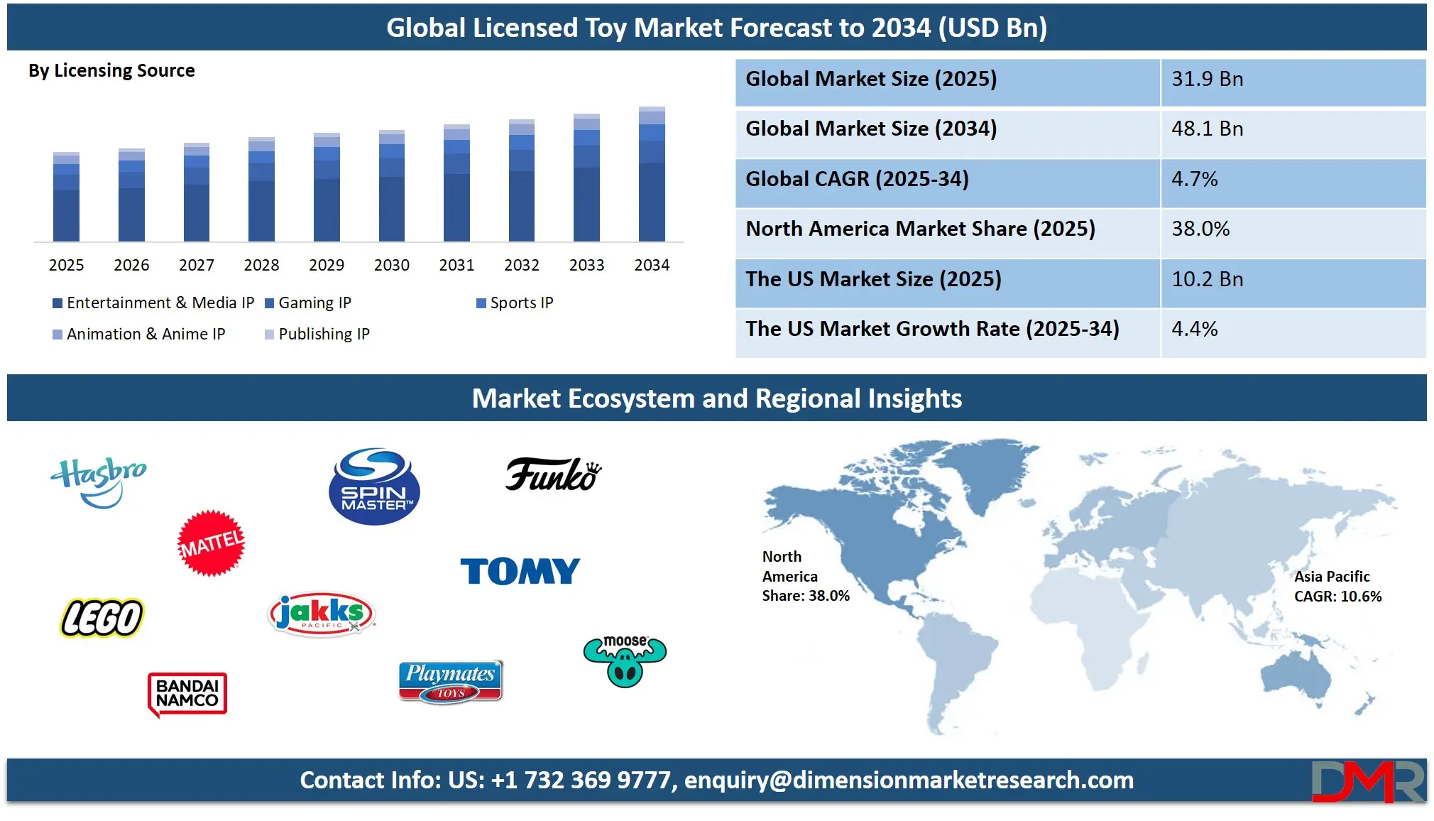 ▾ North America is expected to have the largest market share in the global Licensed Toy market, with a share of about 38.0% in 2025.