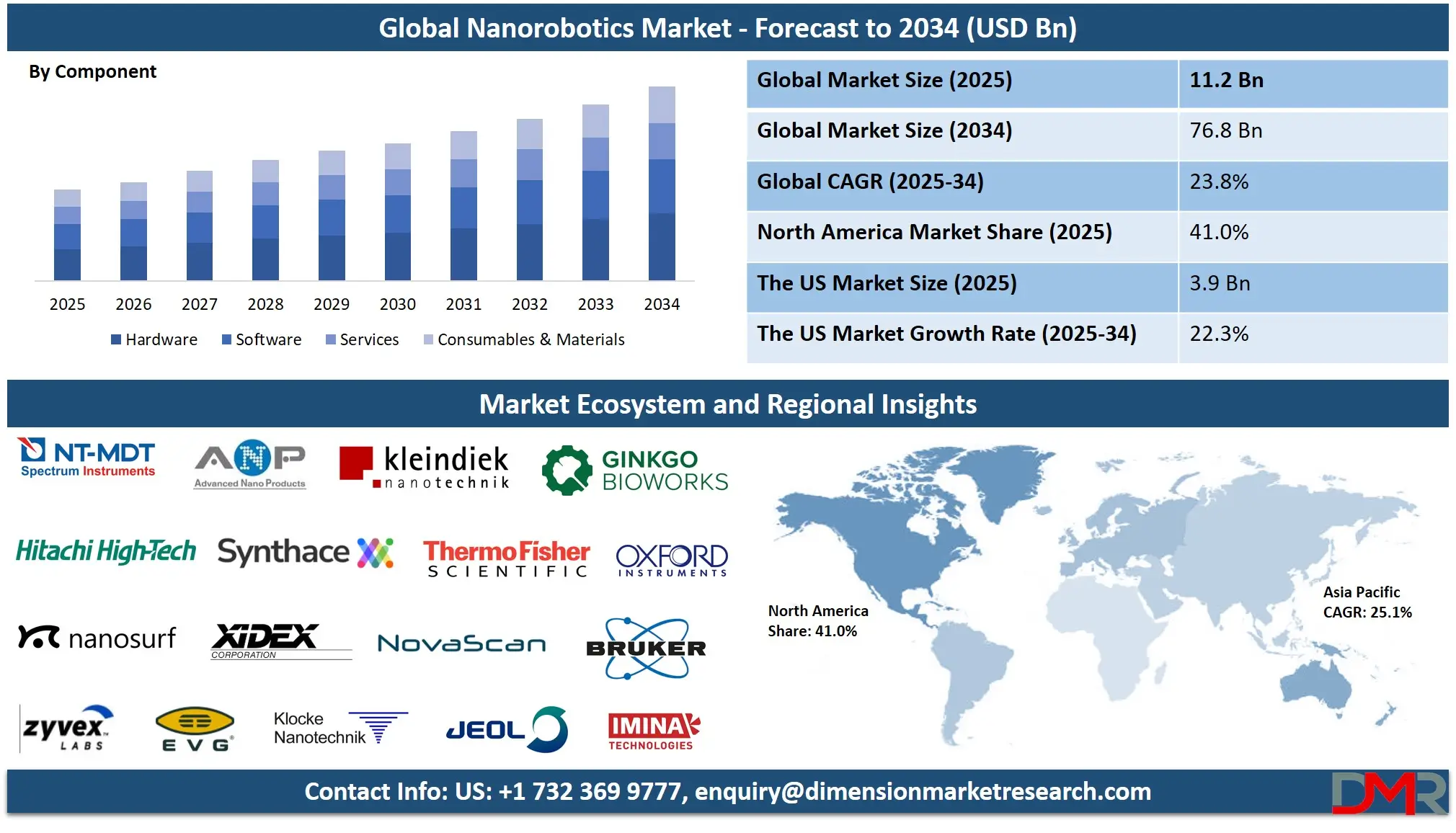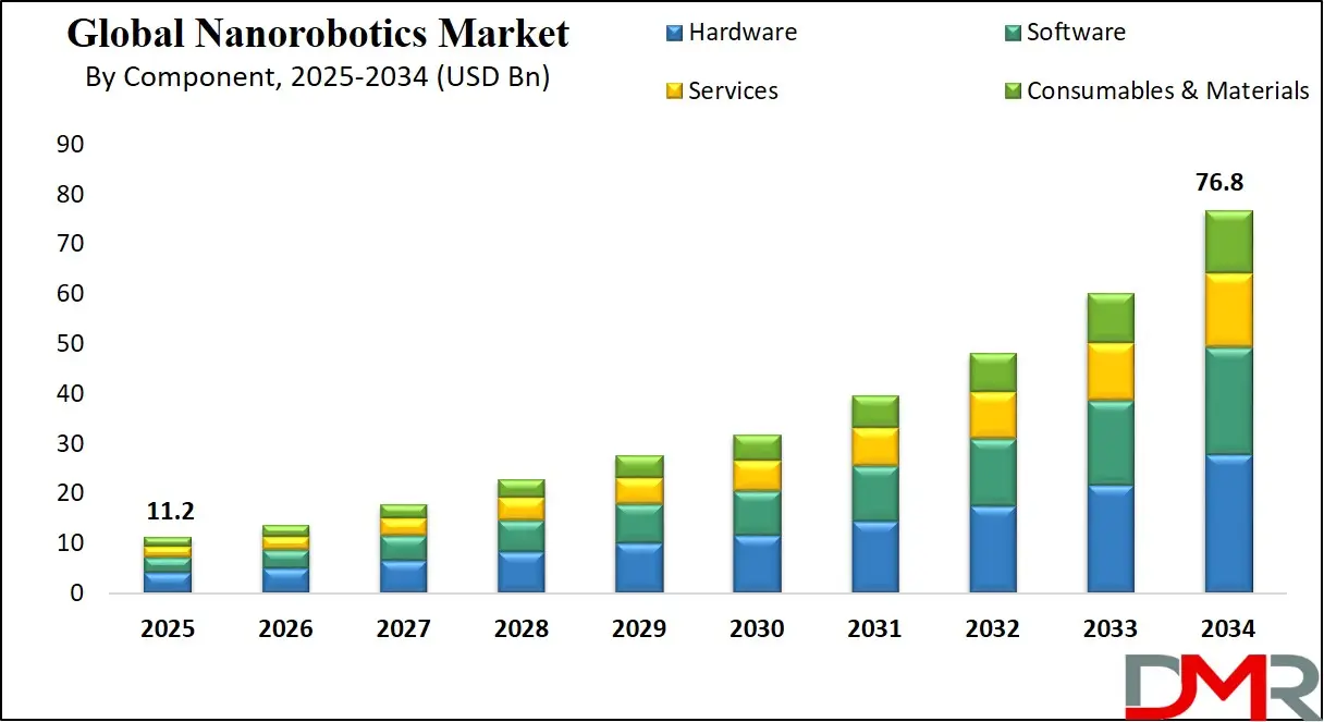 Global Nanorobotics Market By Component (Hardware, Software, Services, Consumables & Materials), By Technology, By Material Type, By Application, and By End-User - Global Industry Outlook, Key Trends and Forecast 2025-2034