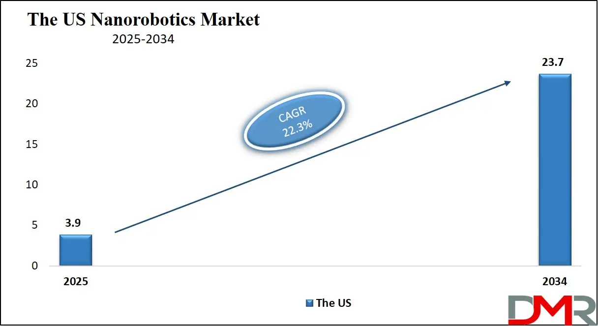 • The US Market Size Insights: The US Nanorobotics Market is projected to be valued at USD 3.9 billion in 2025. It is expected to witness subsequent growth in the upcoming period as it holds USD 23.7 billion in 2034 at a CAGR of 22.3%.