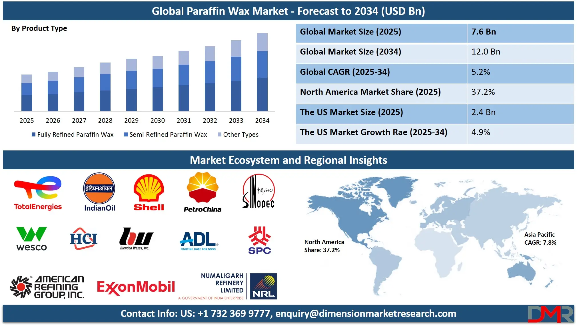 • Global Market Size Insights: The Global Paraffin Wax Market size is estimated to have a value of USD 7.6 billion in 2025 and is expected to reach USD 12.0 billion by the end of 2034.