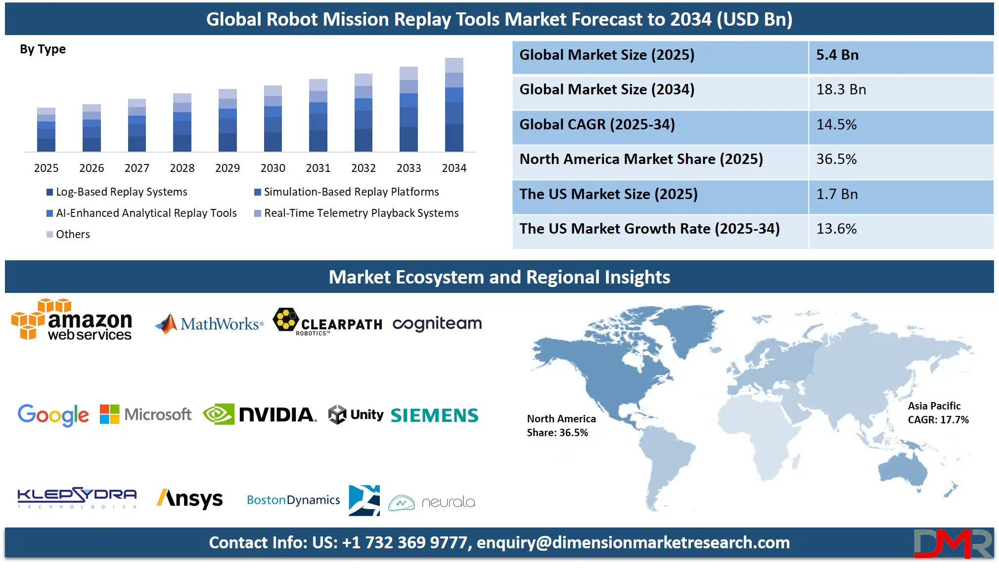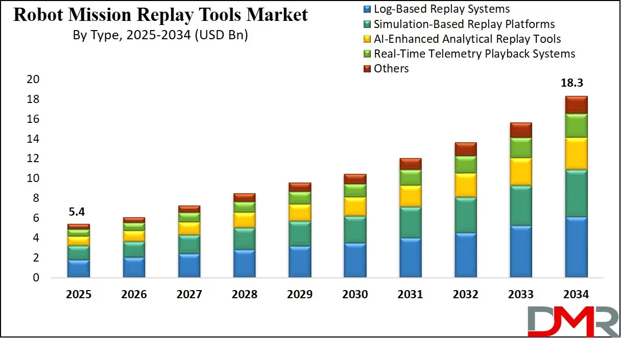 ▾ The Global Robot Mission Replay Tools Market size is estimated to have a value of USD 5.4 billion in 2025 and is expected to reach USD 18.3 billion by the end of 2034.