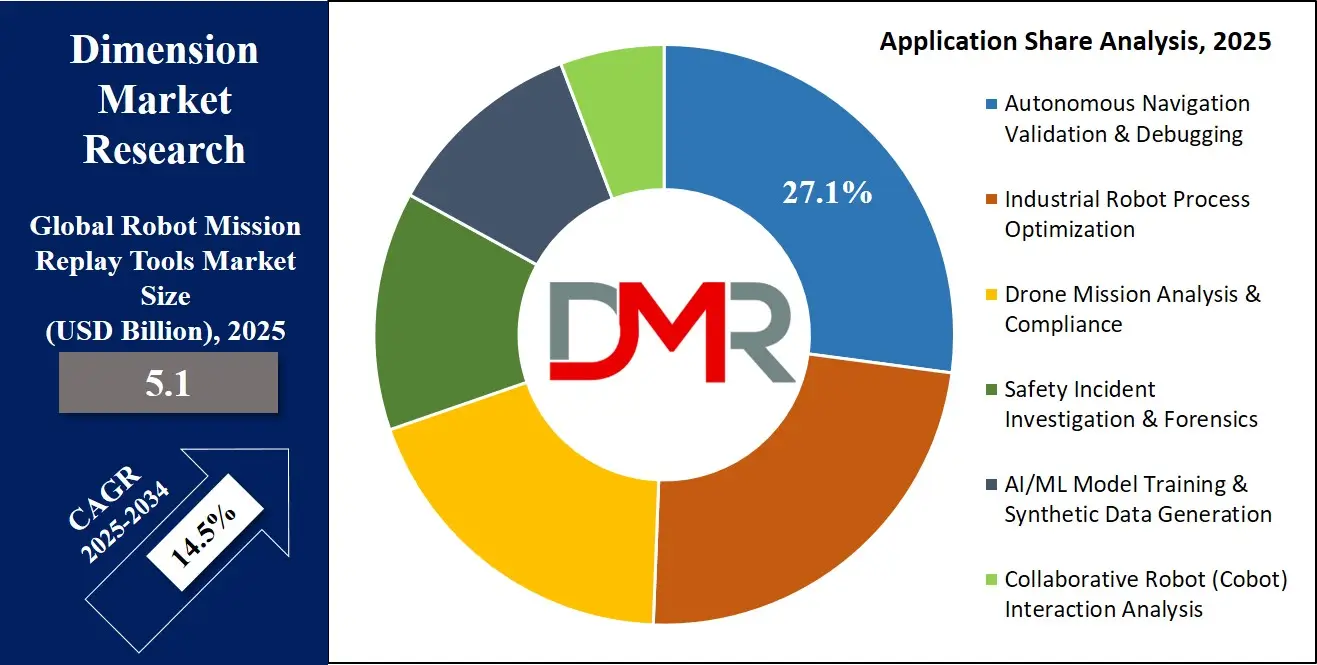 This segment's dominance is reinforced by the rapid growth of autonomous mobile robots (AMRs) and autonomous vehicles. Industrial Robot Process Optimization ranks as the second-largest application segment. In manufacturing, replay tools are used to analyze cycle times, identify motion inefficiencies, verify collaboration with human workers, and optimize production flows. The drive for higher productivity and quality in smart factories sustains strong demand in this segment.