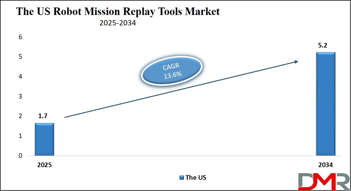 ▾ The US Robot Mission Replay Tools Market is projected to be valued at USD 1.7 billion in 2025. It is expected to reach USD 5.2 billion in 2034 at a CAGR of 13.6%.