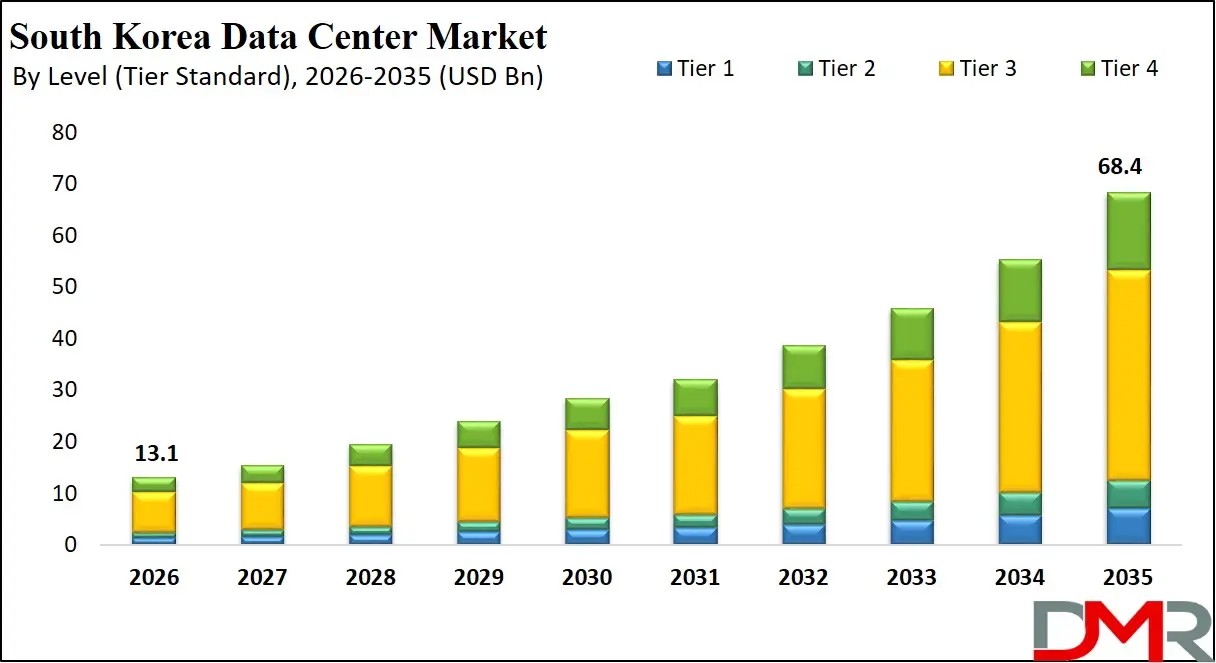 The South Korea data center market is expected to reach USD 13.1 billion by 2026 and expand at a robust CAGR of 20.2% to hit USD 68.4 billion by 2035, driven by increasing cloud adoption, hyperscale infrastructure investments, and rising demand for colocation, edge computing, and AI-ready facilities.