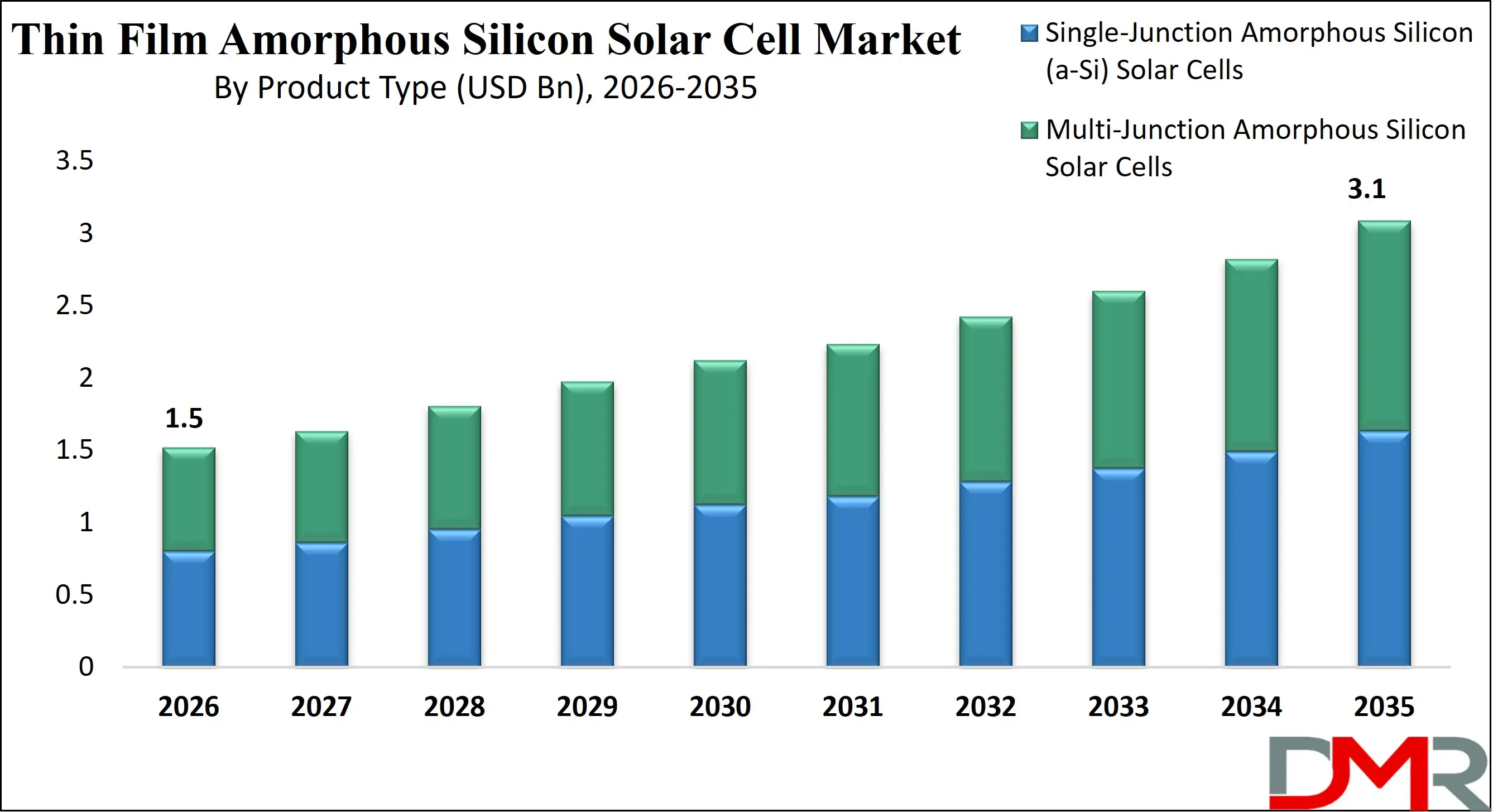 ▾ The Global Thin Film Amorphous Silicon Solar Cell Market size is expected to reach USD 1.5 billion by 2026 and is projected to reach USD 3.1 billion by the end of 2035.