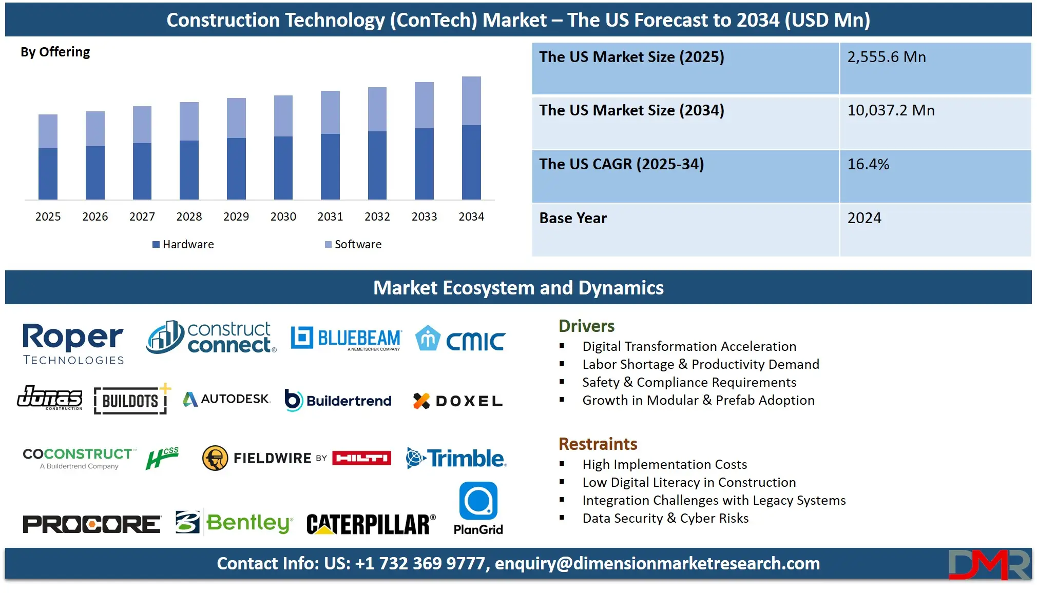 The US Construction Technology (ConTech) Market By Offering (Hardware, Software), By Technology, By Application, By End User, and By Project Type - Industry Outlook, Key Trends and Forecast 2025-2034