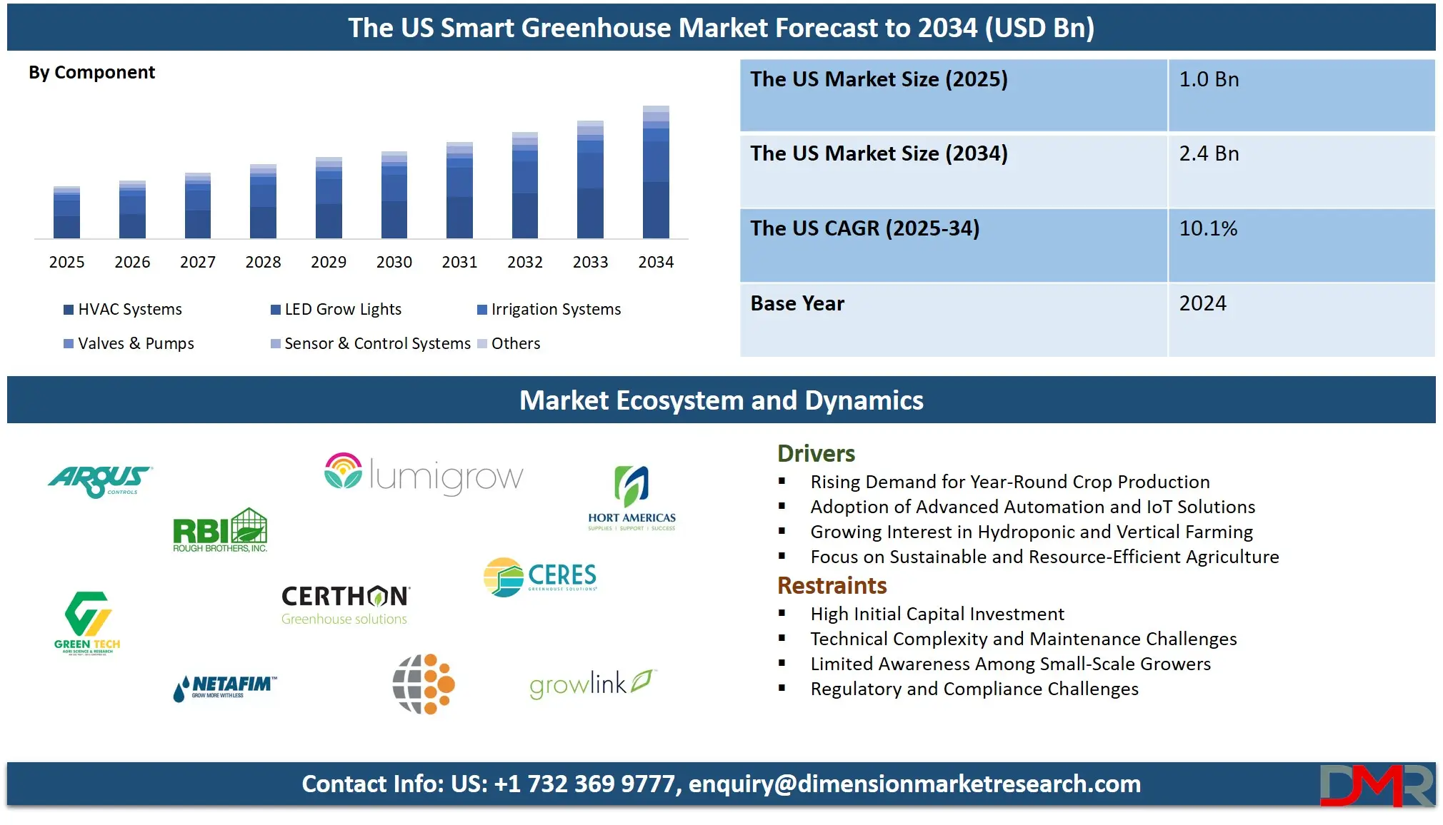 Prominent Players Nexus Corporation, Argus Control Systems Ltd., Rough Brothers, Inc., GreenTech Agro LLC, Netafim Ltd., LumiGrow, Inc., Certhon Group, Terrasphere Systems LLC, Hort Americas, LLC, Ceres Greenhouse Solutions, International Greenhouse Company, Growlink, and Others.
